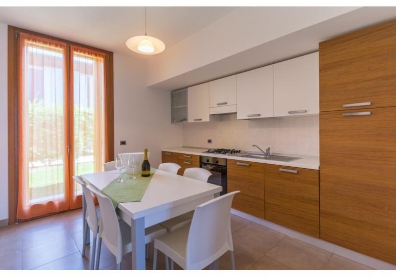 Ubytovanie: pekné apartmány v radových domčekoch, vždy s vybaveným kuchynským kútom, 2x SPR+WC, TV/SAT, klimatizácia, práčka a sušička, umývačka riadu, terasa so záhradnym nábytkom, gril.