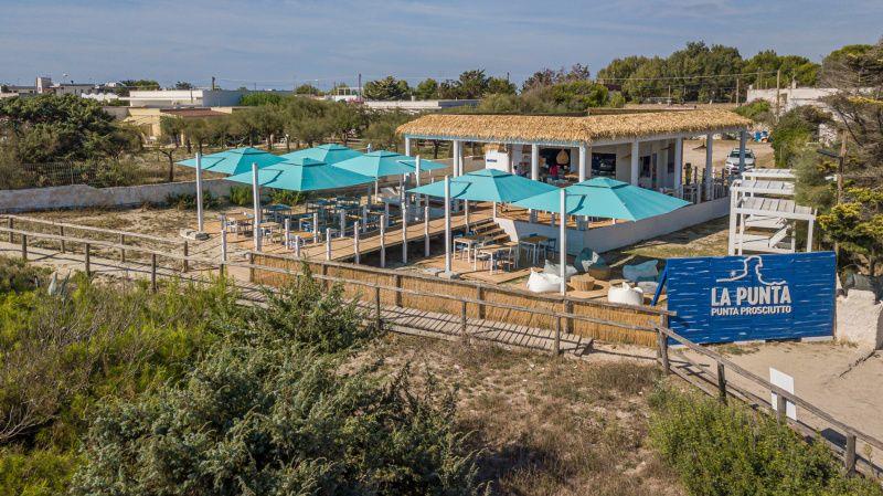 Pláž: piesočné zátoky zasadené medzi skalami. Bezplatná kyvadlová doprava spája kemp s plážovým klubom La Punta v Punta Prosciutto s pravidelnými odchodmi každých 30 minút od 9:00 do 13:30 a od 15:00 do 19:00. Tu je možné si prenajať slnečníky alebo si užívať verejnú pláž.