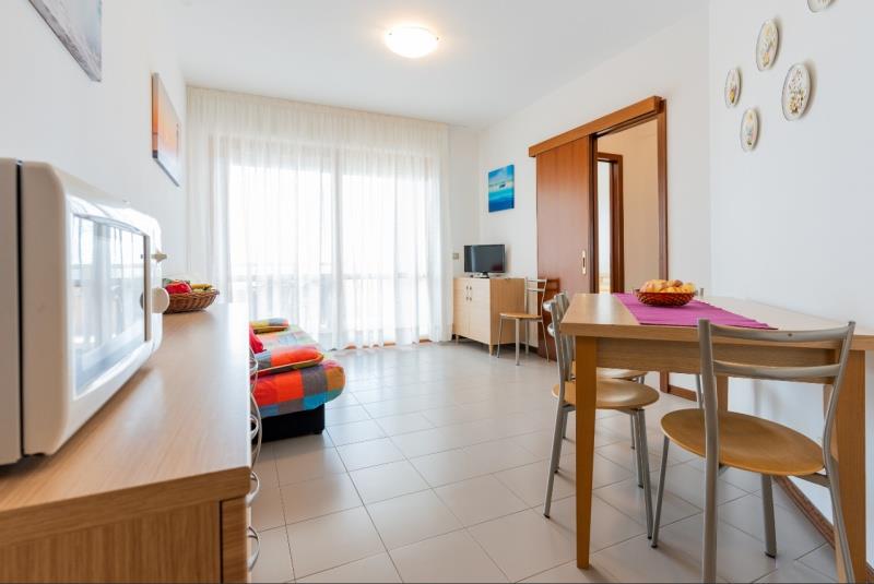 C6-1FM: (max. 6 osôb) dve spálne po dvoch lôžkach, denná miestnosť s rozkladacím dvojlôžkom a kuchynským kútom, balkón s priamym výhľadom na more.