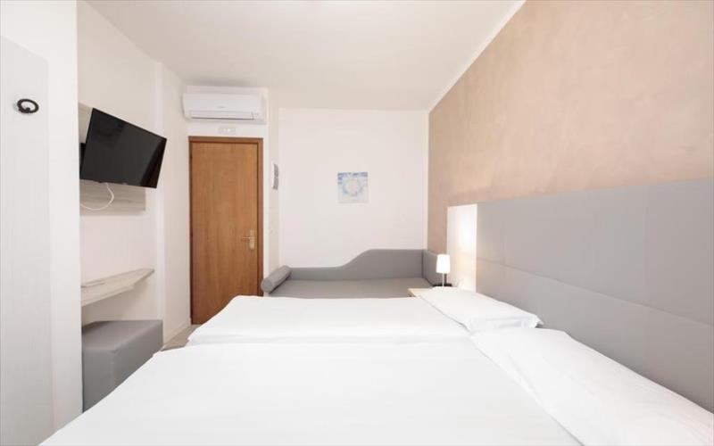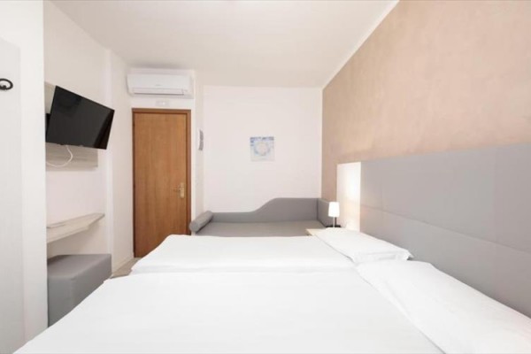 Charakteristika: Stavba má recepciu,bar,televízna miestnosť, súkromné parkovisko pre hostí, požičovňa bicyklov a plážový servis na súkromnej hotelovej pláži. Má 33 dvojlôžkových izieb a 5 jednolôžkových izieb rozložených na 4 poschodiach. Všetky izby majú vlastnú kúpeľňu so sprchovacím kútom a sušičom vlasov,bezpečné, satelitná TV s kanálmi v taliančine, angličtina a nemčina,minibar, klimatizácia a malý balkón so stolom a stoličkami. V niektorých dvojlôžkových izbách je možné pridať tretie lôžko.