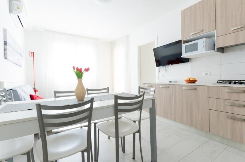 Ubytovanie: apartmány sú moderne zariadené, vždy s vybaveným kuchynským kútom, mikrovlnná rúra, SPR+WC+fén, TV/SAT, klimatizácia, Wi-fi, balkón.
