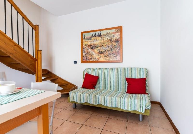 C7 rezidencia: (max. 7 osôb) spálňa s dvomi lôžkami, spálňa s tromi lôžkami, denná miestnosť s rozkladacím dvojlôžkom a kuchynským kútom, balkón na poschodí (príp. malá záhradka na prízemí).