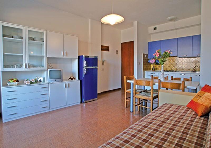 Ubytovanie: priestranné apartmány sú štandardne zariadené, vždy s vybaveným kuchynským kútom, SPR+WC, balkón. Niektoré apartmány s klimatizáciou (v B5, na vyžiadanie pri rezervácii).