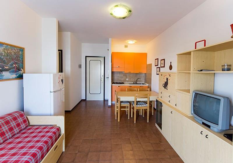 Ubytovanie: apartmány sú štandardne zariadené, vždy s vybaveným kuchynským kútom, SPR+WC, balkón. Niektoré apartmány majú TV, niektoré klimatizáciu (na vyžiadanie pri rezervácii).