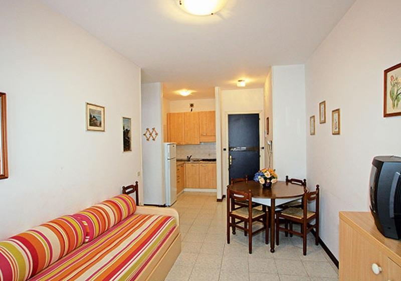 Ubytovanie: apartmány sú štandardne zariadené, vždy s vybaveným kuchynským kútom, SPR+WC, TV, niektoré apartmány s klimatizáciou (na vyžiadanie pri rezervácii), balkón.