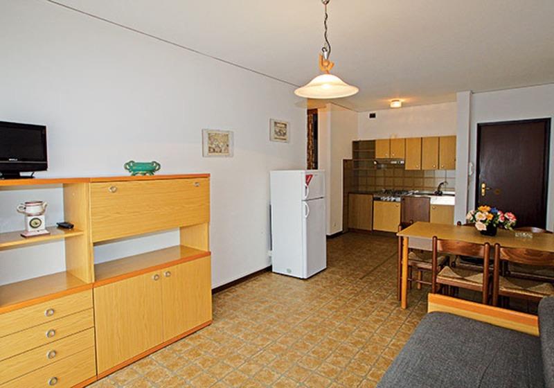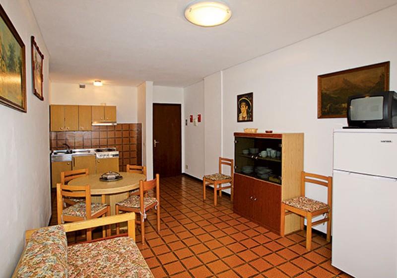 B4-1: (max. 4 osoby) spálňa s dvomi lôžkami, denná miestnosť s rozkladacím dvojlôžkom a kuchynským kútom.