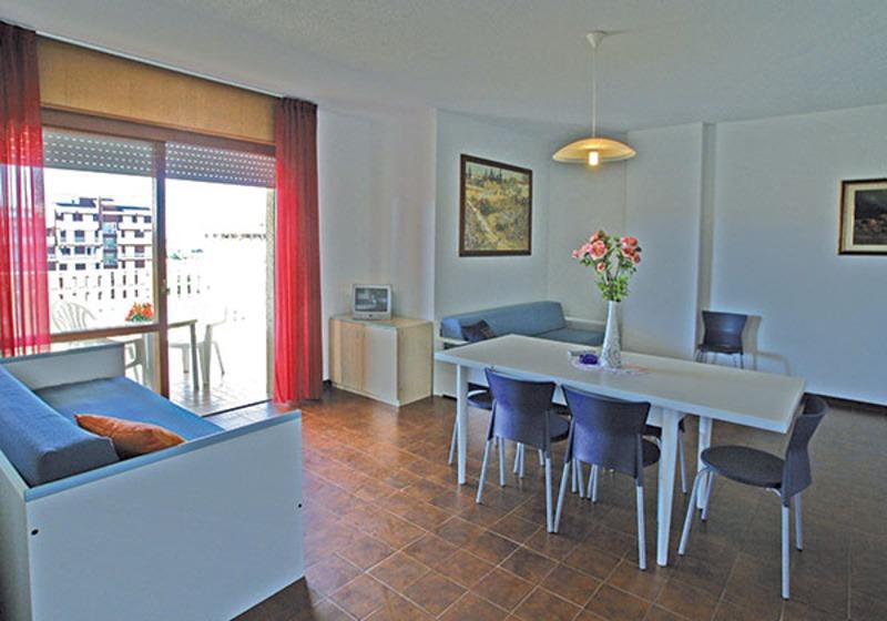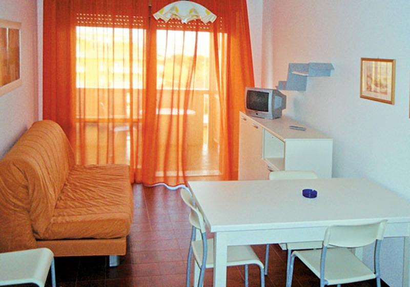Ubytovanie: priestranné apartmány sú štandardne zariadené, vždy s vybaveným kuchynským kútom, SPR+WC, balkón. Niektoré apartmány majú TV alebo klimatizáciu (na vyžiadanie pri rezervácii).