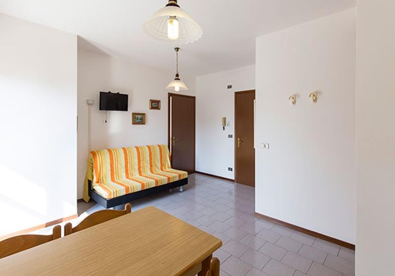 A3: (max. 3 osoby) štúdio (jedna miestnosť) s rozkladacím dvojlôžkom a jedným rozkladacím lôžkom, kuchynský kút.