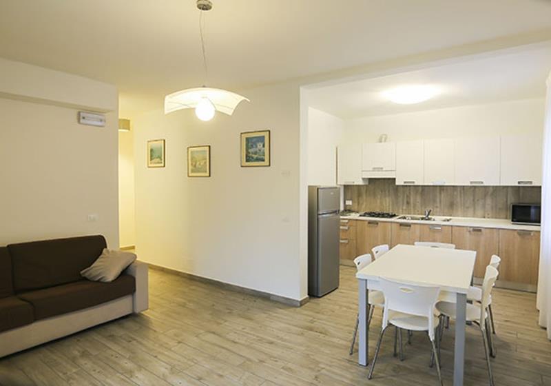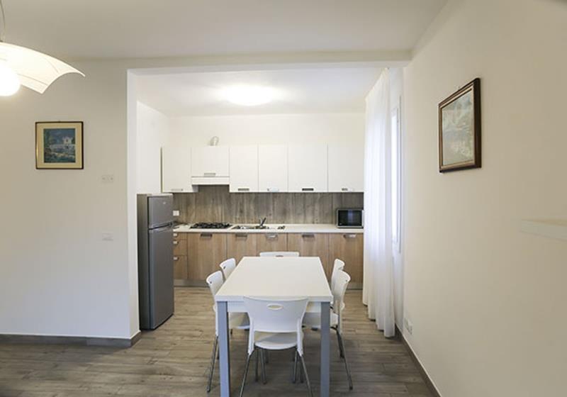 Ubytovanie: novo zariadené apartmány, vždy s vybaveným kuchynským kútom, mikrovlnná rúra, SPR+WC, TV, klimatizácia, pračka, terasa so záhradným nábytkom.
