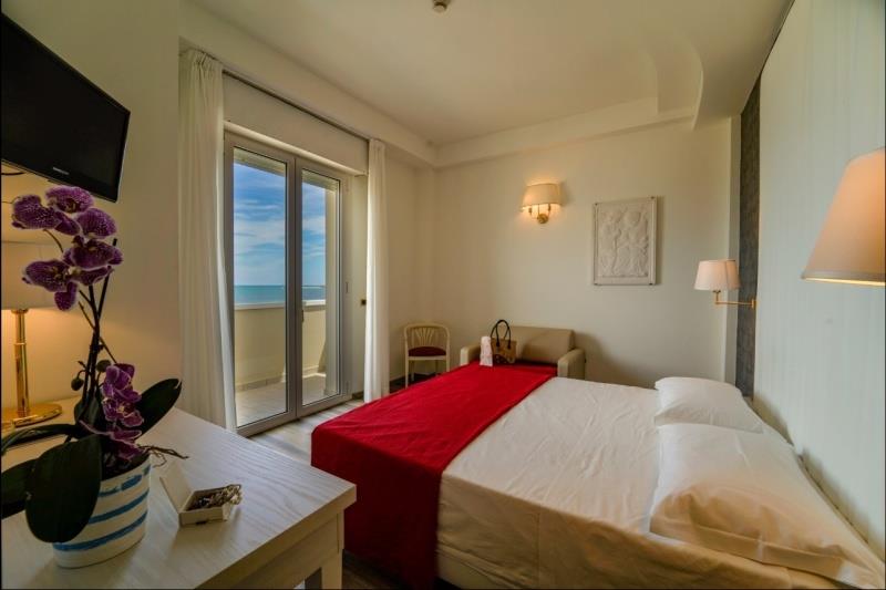 dvojlôkžová izba s možnosťou prístelky Superior SPR+WC, fén, TV/SAT, klimatizácia, minibar, trezor, Wi-fi, balkón, priamy výhľad na more.