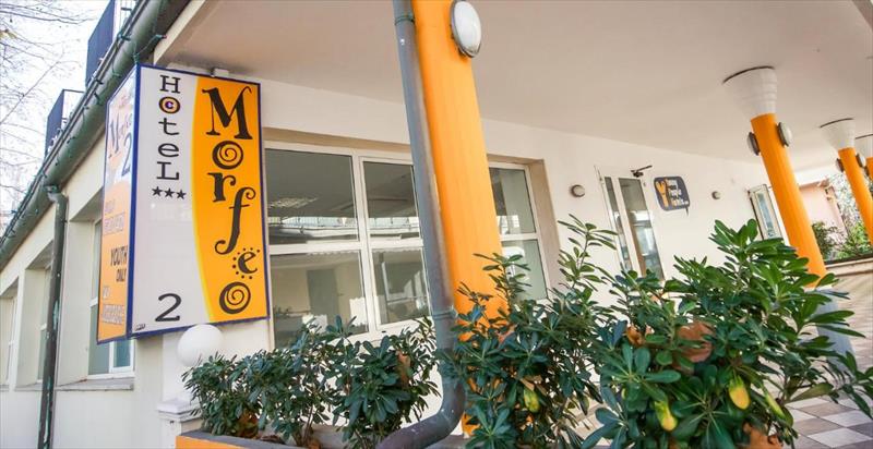 Poloha: Destinácia: Rivazzurra - Rimini Kategória hotela: 3 hviezdičky Poloha: Hotel Morfeo sa nachádza v Rivazzurre v Rimini, približne 350 metrov od pláže a v tesnej blízkosti mnohých obchodov, barov a reštaurácií. Vybavenie hotela: Hotel má celkovo 30 izieb, recepciu, bar, reštauráciu a výťah. Wi-Fi je k dispozícii v celom hoteli zadarmo. Vybavenie izieb: Izby majú vlastné sociálne zariadenie, klimatizáciu, trezor, sprchovací kút, fén, TV, telefón a Wi-Fi. Jednolôžkové izby nemajú balkón. Viacero izieb, ak sú k dispozícii, môže byť s poschodovou posteľou. Stravovanie: Polpenzia: - Raňajky formou bufetu - Večera formou bufetu Check-in: od 14:00 Check-out: do 10:00 Zvieratá: Malé zvieratá sú povolené za poplatok na mieste (na vyžiadanie) a v súlade s hotelovými predpismi. Turistická daň: nie je zahrnutá v cene. Klienti ju musia uhradiť na mieste pri príchode. PRÍPADNÉ POŽIADAVKY ALEBO ŠPECIÁLNE ŽELANIA KLIENTOV NIE JE MOŽNÉ ZARUČIŤ.