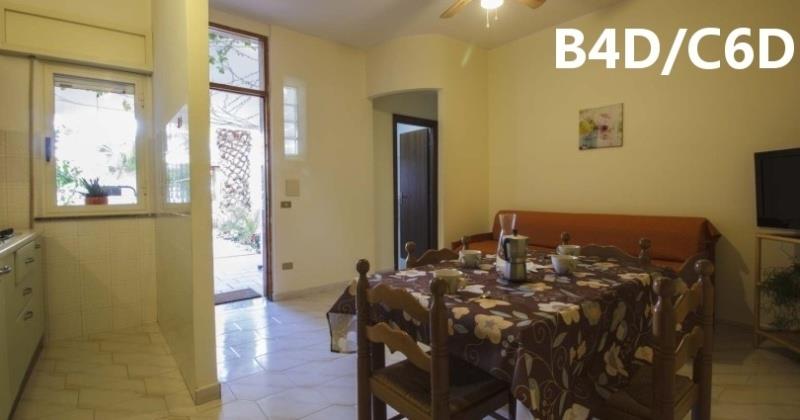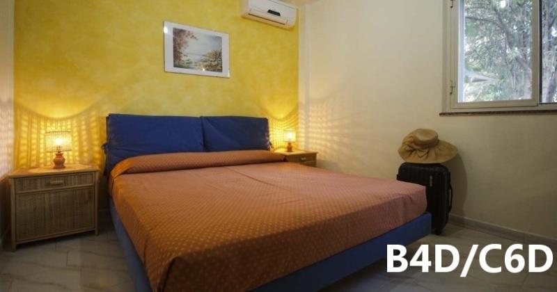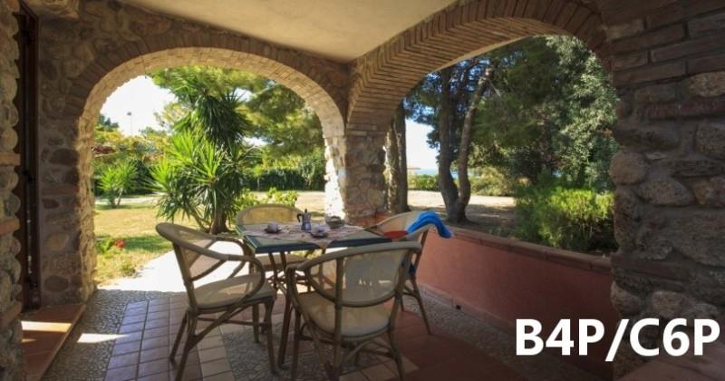 B4P: (max. 4 osoby) spálňa s dvojlôžkom, denná miestnosť s rozkladacím dvojlôžkom a kuchynským kútom, SPR+WC, TV/SAT, fén, klimatizácia, veranda so záhradným nábytkom, výhľad na more.