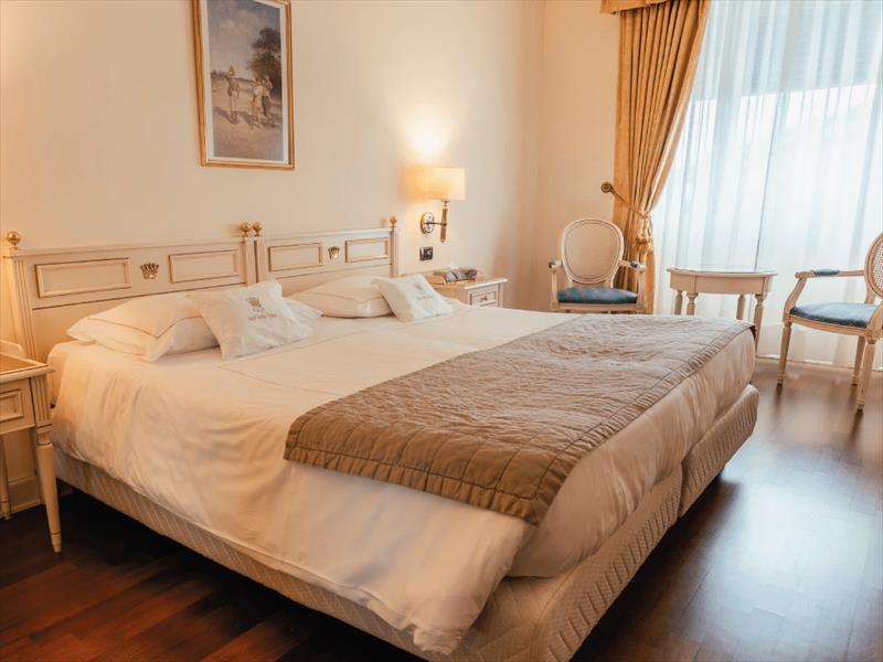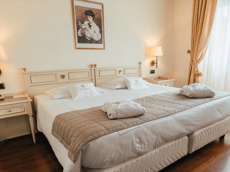 Klasické: Svetlé a elegantne zariadené izby bez výhľadu na jazero, ale útulné a vybavené najmodernejším komfortom. Všetky kúpeľne majú vaňu/sprchu. Približne 15/16 m2, izba nemá balkón a nachádza sa na strane ulice. Detská postieľka | Sušič vlasov | Klimatizácia | Minibar | Satelitná TV | Telefón | Trezor | Vaňa alebo sprcha | Wi-Fi