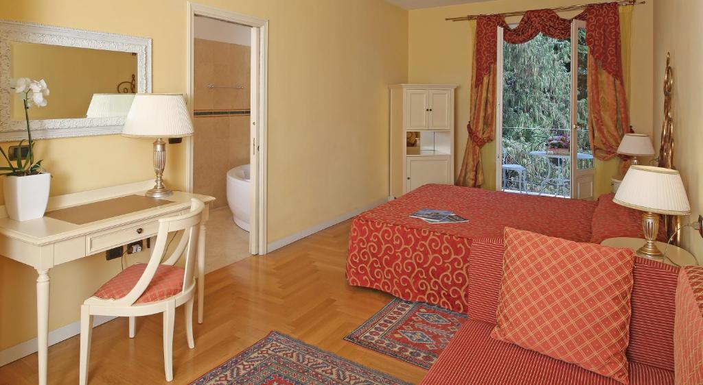 Hotel má 34 izieb, rozdelených na klasické, superior a deluxe, všetky zariadené v secesnom štýle a vybavené moderným komfortom, ako je klimatizácia, bezplatné Wi-Fi pripojenie, satelitná TV, minibar, trezor a súkromná kúpeľňa so sušičom vlasov a toaletnými potrebami. Niektoré izby ponúkajú výhľad na jazero alebo do záhrady.