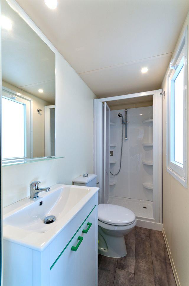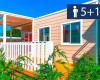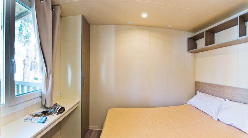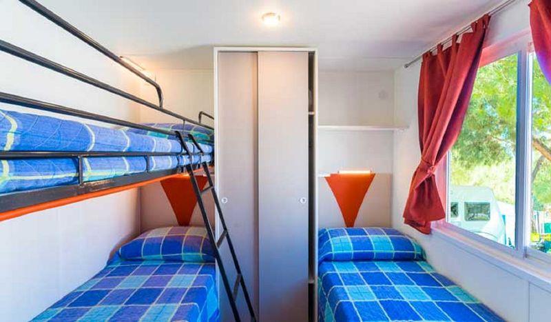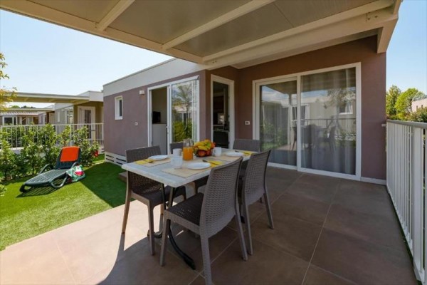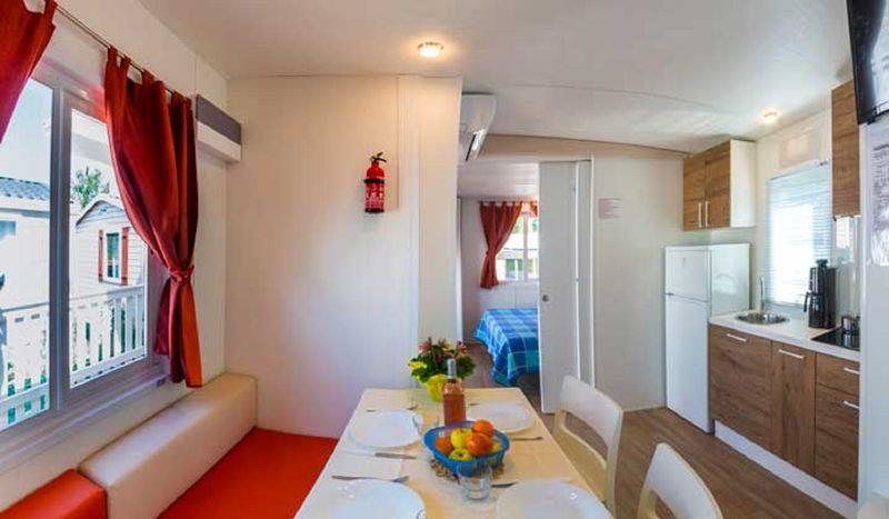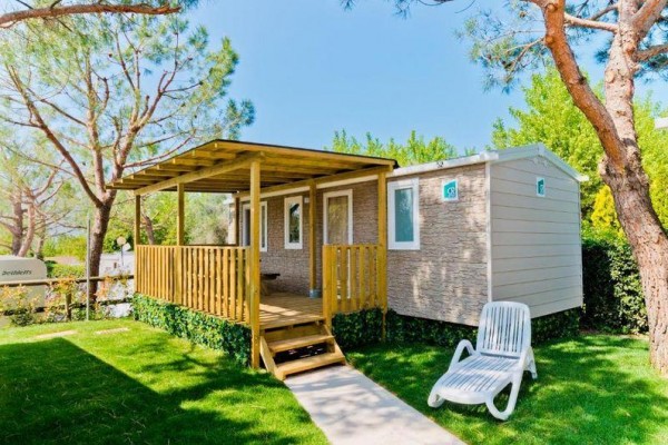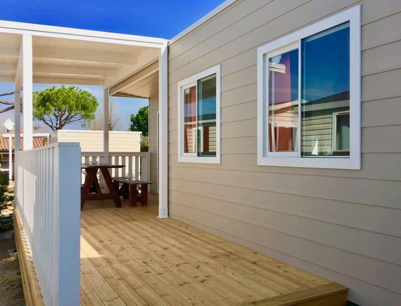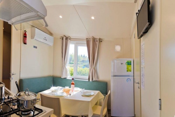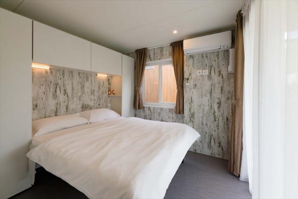 Mobilné domy Village: cca 31 m2. Majú sprchovací kút, fén, satelitnú TV, trezor, chladničku, klimatizáciu, Wi-Fi, terasu. 1 manželská posteľ 190 cm x 150 cm, 3 jednolôžka 190 cm x 80 cm každé Detská postieľka | Sušič vlasov | Klimatizácia | Kuchynský kút | Chladnička | Satelitná TV | Sprcha | Trezor | Wi-Fi