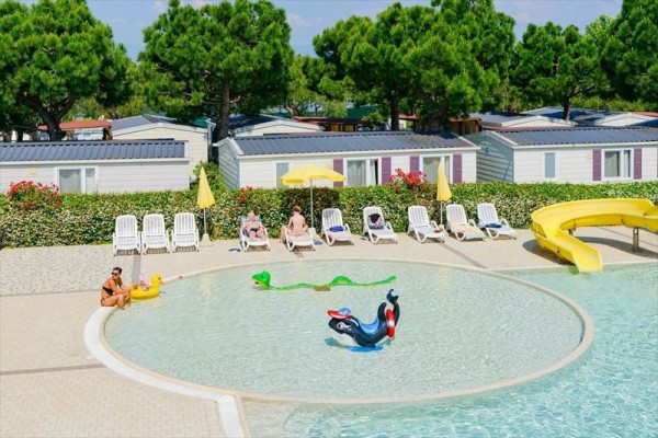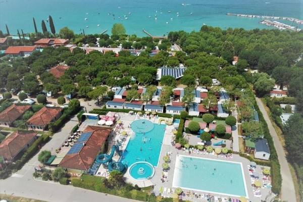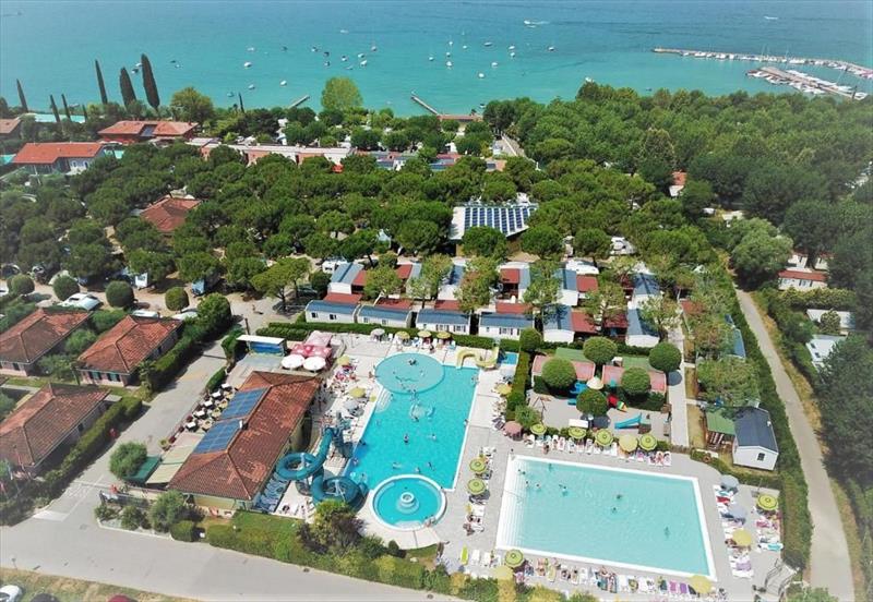 Možnosti ubytovania zahŕňajú viac ako 400 panoramatických miest pre stany, kempingy a karavany (s elektrinou, vodou a kanalizáciou), ako aj 50 útulných bungalovov a mobilných domov vybavených klimatizáciou, súkromnými kúpeľňami, plne vybavenými kuchyňami a krytými vonkajšími priestormi. Služby sú špičkové: vyhrievaný olympijský bazén s vírivkou, detský bazén, tenisové kurty, ihriská na malý futbal a plážový volejbal, reštaurácia-pizzeria s miestnymi benátskymi a stredomorskými špecialitami, minimarket, bar, zmrzlináreň a samoobslužná práčovňa. V hlavnej sezóne (od apríla do októbra) organizuje talianska zábava mini kluby pre najmenších, kurzy plávania, tanečné večery a cyklistické výlety.