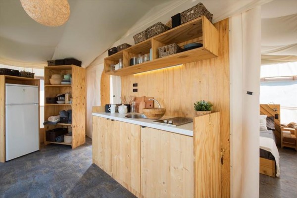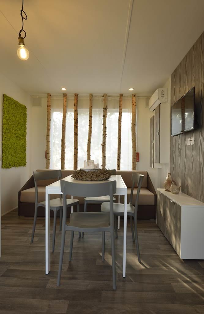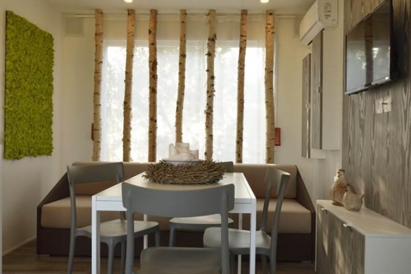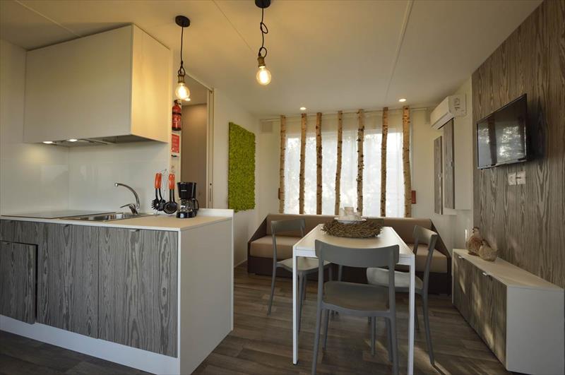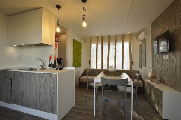 Ubytovanie: STAN: Safari stan s rozlohou približne 28 m2 vhodný pre 5 osôb, pozostáva z jednej spálne s manželskou posteľou a jednej spálne s poschodovou posteľou a jednolôžkom. Kúpeľňa má toaletu, umývadlo a sprchovací kút. Kuchyňa je vybavená indukčnou varnou doskou, chladničkou, mikrovlnnou rúrou, americkým kávovarom alebo kanvicou a ventilátorom. Klimatizácia nie je k dispozícii. Súkromná zariadená veranda. Domáce zvieratá NIE SÚ povolené. Postele v hornej časti sú určené pre deti do maximálne 6 rokov (20 kg). MHTOP: TOP HILL Mobilný dom TOP HILL môže ubytovať až 5 osôb. Mobilný dom s rozlohou približne 37 m2 ponúka funkčné a pohodlné priestory; ubytovanie zahŕňa obývaciu izbu s klimatizáciou, kuchynským kútom a pohovkou, 1 spálňu s manželskou posteľou, 1 spálňu s 3 samostatnými lôžkami (z ktorých jedna je poschodová posteľ) a 2 kúpeľne s toaletou, sprchovacím kútom a umývadlom. Vonkajšia krytá veranda (8 x 2,5 m). Jedno parkovacie miesto v cene. Domáce zvieratá NIE SÚ povolené. Postele v stene sú určené pre deti do maximálne 6 rokov (20 kg). MHLV: MH Garda Terrace s výhľadom na jazero (cca 35 m2): Mobilný dom LAKE VIEW TERRACE (cca 35 m2) môže ubytovať maximálne 5 osôb a má pohodlnú verandu, z ktorej si môžete vychutnať ten najlepší výhľad. Dom pozostáva z obývacej izby s klimatizáciou, kuchynského kúta s indukčnou varnou doskou a umývačkou riadu, pohovky, 1 dvojlôžkovej spálne, 1 spálne s 3 samostatnými lôžkami (z ktorých jedno je poschodová posteľ) a 2 kúpeľní s toaletou, sprchovacím kútom a umývadlom. Jedno parkovacie miesto v cene. Domáce zvieratá NIE SÚ povolené. Postele v hornej časti sú určené pre deti do 6 rokov (20 kg). MH8: MH Garda Spa s výhľadom na jazero (cca 35 m2): Mobilný dom LAKE VIEW s vírivkou (35 m2) sa nachádza na privilegovanom, tichom a tienistom mieste a ponúka nádherný výhľad na jazero, ktorý si môžete vychutnať aj z veľmi pohodlnej súkromnej vírivky. Ubytovanie zahŕňa: obývaciu izbu s klimatizáciou, kuchynský kút s indukčnou varnou doskou a umývačkou riadu, pohovku, 1 spálňu s manželskou posteľou, 1 spálňu s 3 samostatnými lôžkami (z ktorých jedna je poschodová posteľ) a 2 kúpeľne s toaletou, sprchovacím kútom a umývadlom. Jedno parkovacie miesto v cene. Domáce zvieratá NIE SÚ povolené. Postele v hornej časti sú určené pre deti do maximálne 6 rokov (20 kg).
