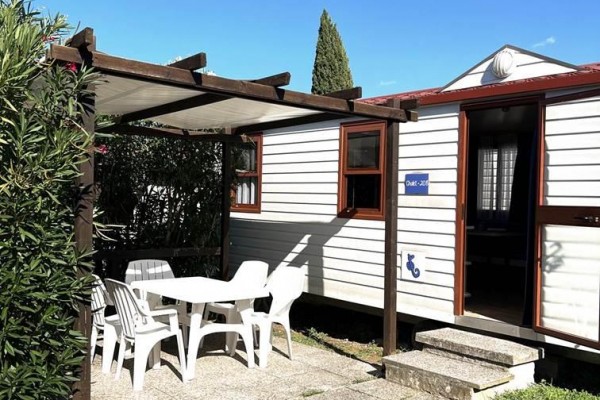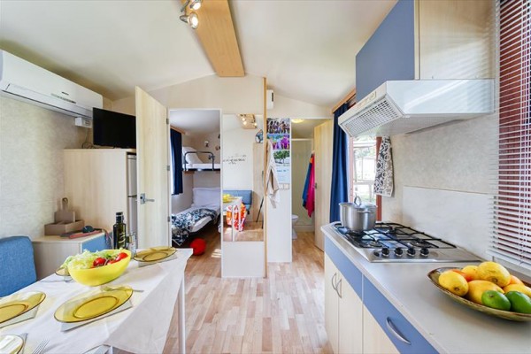Typ chaty/Tahiti: 24 m2, dvojlôžková spálňa, 1 spálňa s dvoma samostatnými posteľami (ak je obsadená 4 osobami) alebo s 3. poschodovou posteľou (ak je obsadená 5 osobami), obývacia izba s kuchynským kútom, 1 kúpeľňa (v Tahiti sprchovací kút/umývadlo oddelené od toalety). Detská postieľka | Klimatizácia | Kuchynský kút | Chladnička | Satelitná TV | Sprcha