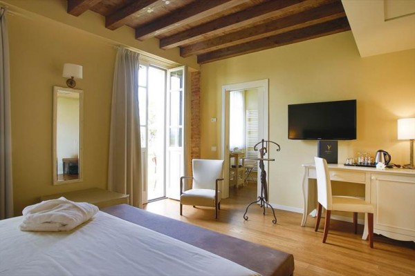 Vybavenie a služby: - Wellness zóna s vírivkou, saunou, tureckým kúpeľom, relaxačnou zónou s možnosťou kozmetických procedúr a wellness balíčkov. Vstup pre osoby mladšie ako 16 rokov je zakázaný. - 2 vonkajšie bazény so slanou vodou (bez chlóru) s vírivkami otvorené približne od 1. 4. do 6. 10. - Osoby mladšie ako 18 rokov nemajú vstup do nekonečného bazéna. - Golf v blízkosti (cca 8 km) - Platené požičovne bicyklov - Plážový volejbal - Svadobná cesta: jedna masáž (každá 30 minút) v cene - Kyvadlová doprava autobusom do/z centra mesta Peschiera del Garda (3-krát denne) - 2 reštaurácie: „Ardea Purpurea“ vo vile so zimnou záhradou s výhľadom na jazierko a „Tuffetto Grill and Bar“ počas letnej sezóny - Raňajky sa podávajú do 10:30 - Nestrážené parkovanie, Garáž nie je k dispozícii - Domáce zvieratá sú povolené iba v kategórii deluxe za poplatok. Vstup do bazénov a wellness centra nie je povolený. - Hotel s 2 izbami vhodnými pre hostí s postihnutím (vo vile), na požiadanie. - Akceptované kreditné karty: Visa, Carta Si, Mastercard, Mancomat