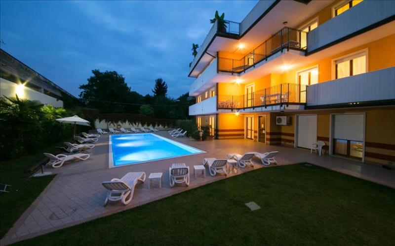 **** klasifikovaná štruktúra má recepciu, vonkajší bazén so slnečníkmi a ležadlami podľa dostupnosti (od apríla do septembra),záhrada, Wi-Fi pripojenie v cene, súkromné kryté parkovisko (1 auto v cene),výťah. Základný dvojizbový byt: Základný dvojizbový byt (cca. 50 m2). Veľká kuchyňa s obývacou izbou plne zariadená riadom, 4 elektrické varné dosky na varenie,chladnička s mraziacim priestorom,mikrovlnka,umývačka riadu, práčka (ak je k dispozícii). Majú tiež digitálnu/satelitnú TV,klimatizácia, vykurovanie pre chladné obdobie,balkón. Je vybavená spálňou s manželskou posteľou a posteľnou bielizňou, posteľná prikrývka a uteráky, 1 šatníková skriňa, 1 kúpeľňa so sprchovacím kútom, WC a bidet. Každý zákazník má k dispozícii malý trezor, kde si odloží svoje osobné veci. Všetko zariadené s vkusom. Bezplatný wifi internet k dispozícii, 1 kryté parkovacie miesto a uvítací balíček.