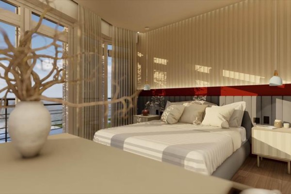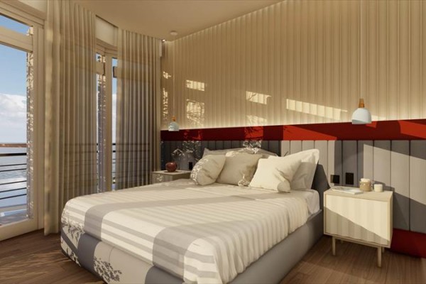 DLX2 DB Deluxe: cca 18-20 m2. Dvojlôžková izba s balkónom a bočným výhľadom na jazero (Na požiadanie je možné pripraviť 2 samostatné postele)