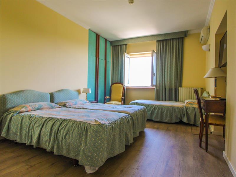 TROJITÁ Izba vhodná pre 3 osoby, zariadená v klasickom štýle a v pastelových, jemných, decentných farbách, ktoré dodávajú každej izbe pokojnú atmosféru a sú ideálne pre regeneračný a pohodlný pobyt. Ponúka všetko pohodlie vrátane sprchy, sušiča vlasov, klimatizácie, Wi-Fi a satelitnej TV.