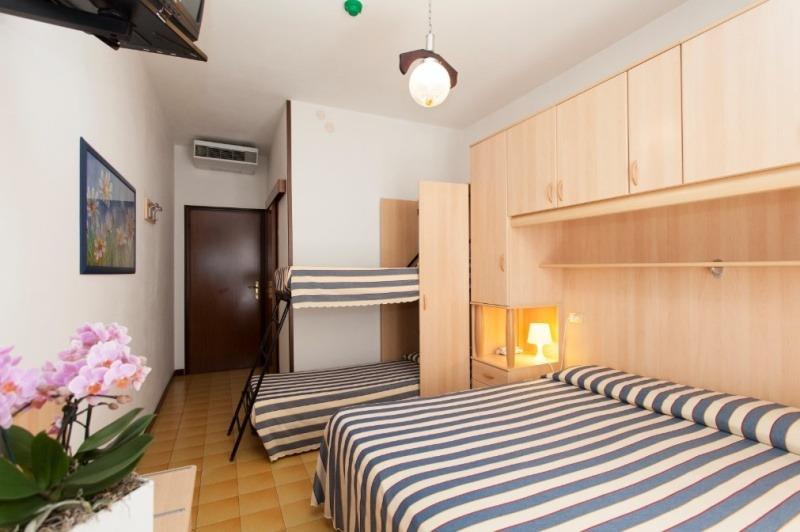 dvojlôžkové izby s možnosťou dvoch prísteliek - SPR+WC, TV, klimatizácia, minibar (na vyžiadanie, za príplatok 5 €/ deň na mieste), balkón.
