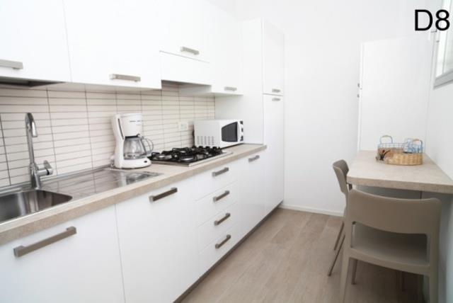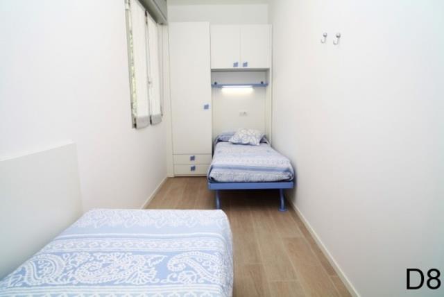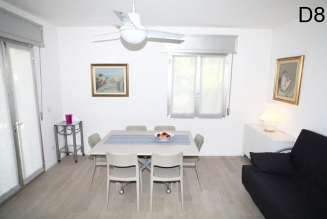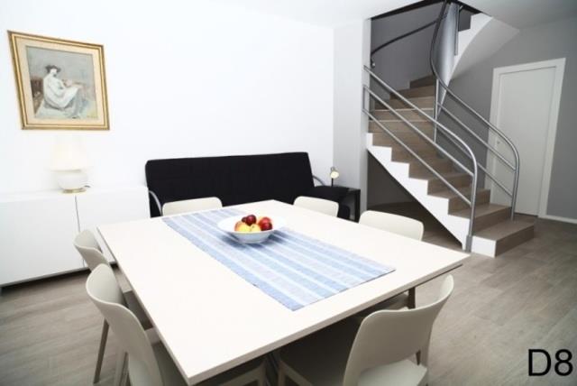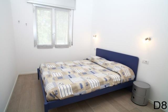D8: (max. 8 osôb, dvojpodlažný apartmán) v prízemí - denná miestnosť s rozkladacím dvojlôžkom, kuchynský kút, malá SPR+WC. Na poschodí – tri spálne po dvoch lôžkach, SPR+WC, balkón.
