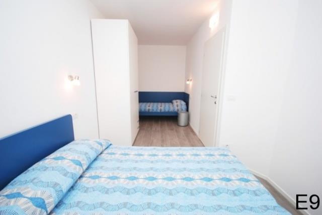 D9: (max. 9 osôb, dvojpodlažný apartmán) v prízemí - spálňa s francúzskym lôžkom (1,5 lôžka) , denná miestnosť s kuchynským kútom a rozkladacím dvojlôžkom, kuchynský kút, malá SPR+WC. Na poschodí – spálňa s dvojlôžkom, spálňa s dvojlôžkom a jedným lôžkom, SPR+WC, balkón.