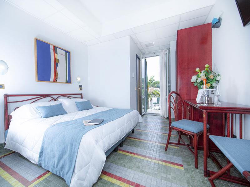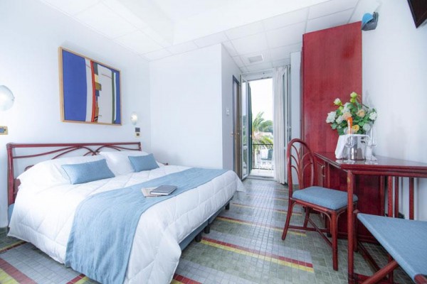 Dvojlôžková izba s balkónom a výhľadom na more Izba pre 2 osoby, približne 17 metrov štvorcových s balkónom s výhľadom na more, vybavená všetkým komfortom a zariadená v modernom, rafinovanom štýle. Má sušič vlasov, telefón, Wi-Fi, satelitnú TV, minibar a klimatizáciu.