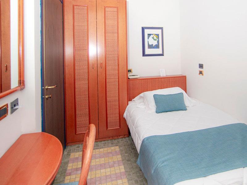 JEDNODUCHÝ BALKÓN Izba pre jednu osobu, približne 11 metrov štvorcových, s balkónom a všetkým komfortom, zariadená v modernom a sofistikovanom štýle. Má sušič vlasov, telefón, Wi-Fi, satelitnú TV, minibar a klimatizáciu.