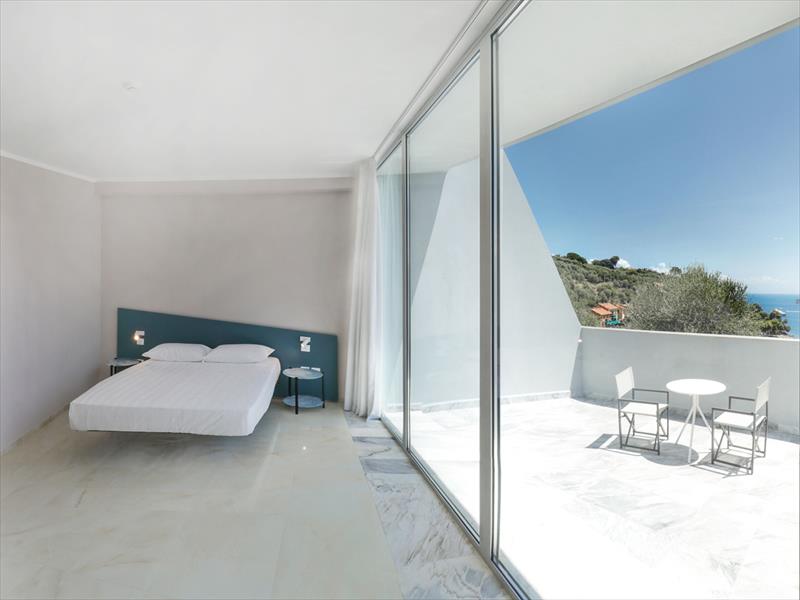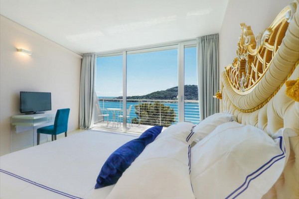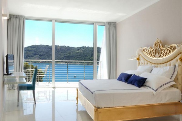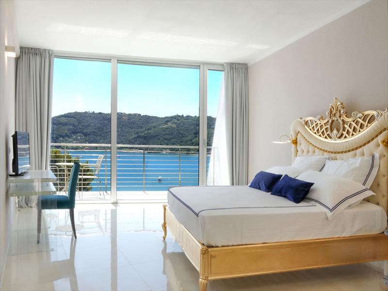 Dvojlôžková izba Deluxe s balkónom a výhľadom na more Priestranná a elegantná izba, zvukotesná, s rozlohou približne 25 metrov štvorcových, so sprchovacím kútom, minibarom, trezorom, sušičom vlasov, satelitnou TV, telefónom s priamou voľbou, Wi-Fi pripojením, klimatizáciou a balkónom s výhľadom na more.