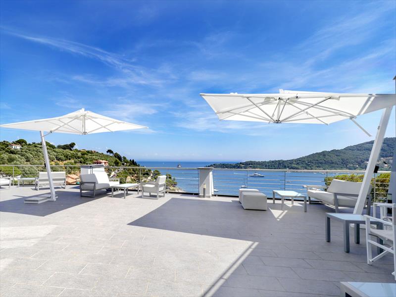 Junior apartmán pre 2 osoby s balkónom a výhľadom na more Priestranná, zvukotesná suita s krásnym výhľadom na more, približne 25 metrov štvorcových, so sprchovacím kútom, minibarom, trezorom, sušičom vlasov, satelitnou TV, telefónom s priamou voľbou, Wi-Fi pripojením, klimatizáciou a balkónom s výhľadom na more.