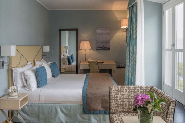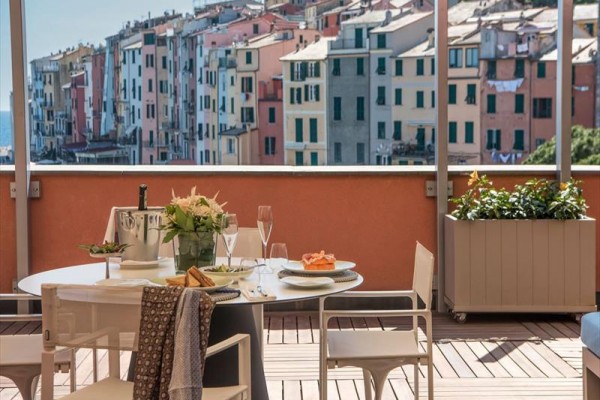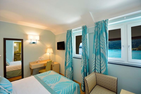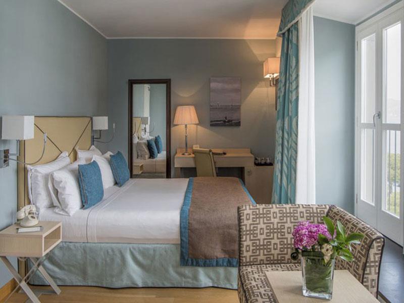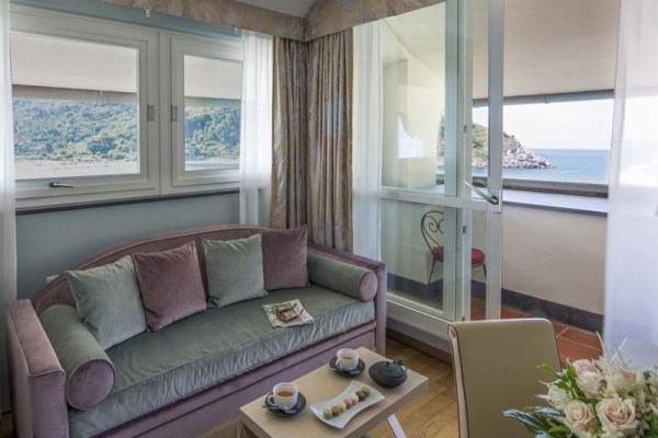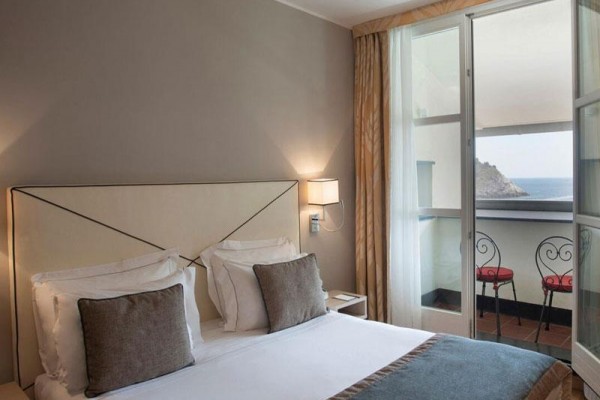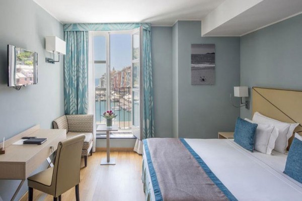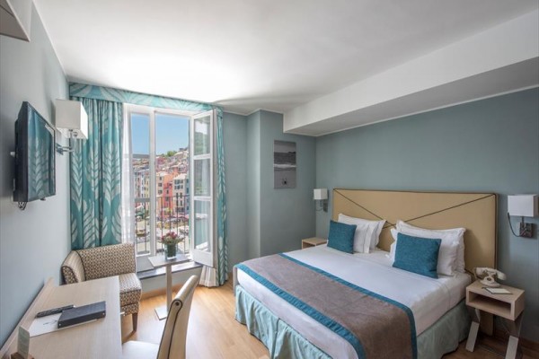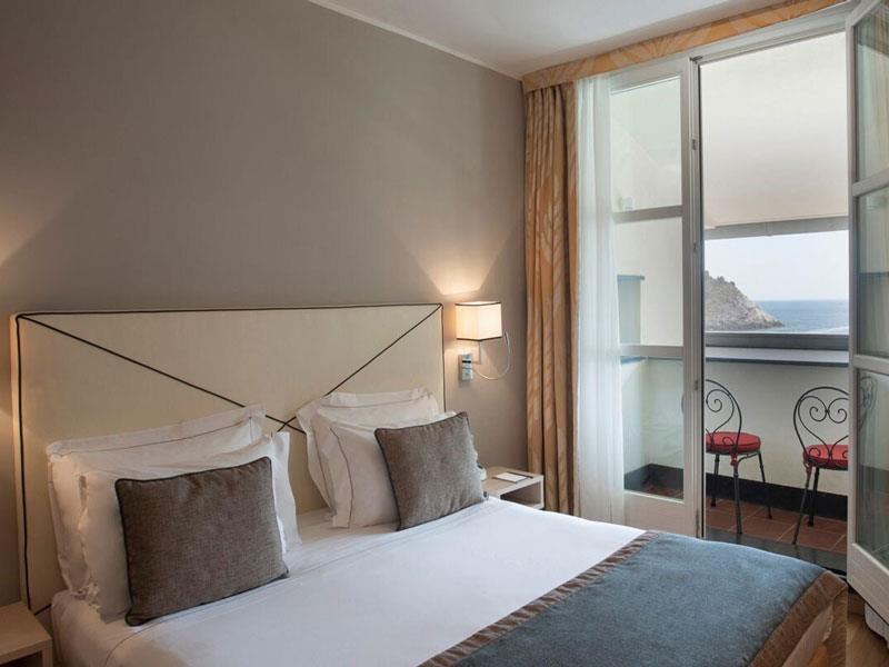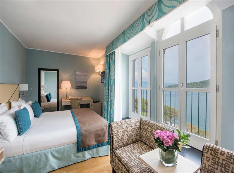 DVOJLÔŽKOVÁ DE LUXE IZBA S VÝHĽADOM NA MORE Izby Deluxe sa nachádzajú v našej historickej budove a sú svetlé a majú veľké okná. Naskytá sa z nich výhľad na ostrov Palmaria alebo na hrad a okolité kopce Portovenere. Každá izba Deluxe má jedinečné architektonické prvky a niektoré majú terasu alebo balkón. Vzácne a moderné textúry sa prelínajú a nachádzajú svoj maximálny výraz v detailoch. Veľké okná umožňujú farbám stien odrážať oblohu a rôzne odtiene, čím vytvárajú symbiotický vzťah s prírodnými živlami. K dispozícii je telefón s priamou voľbou, klimatizácia, minibar, fén a darčekový podnos.