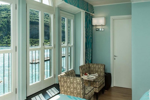 Dvojlôžková izba Executive s výhľadom na more Každá izba Executive s výhľadom na more má jedinečný priestor a mramorovú kúpeľňu. Iba niektoré izby majú malú terasu alebo balkón. Drevená podlaha dodáva izbe teplý nádych a je výslovným odkazom na krytinu používanú na lodiach plaviacich sa okolo Portovenere a jeho skrytých zátok. Vynikajúce materiály a prepracované detaily týchto izieb dotvárajú exteriér. K dispozícii je kúpeľňa s vaňou, telefón s priamou voľbou, klimatizácia, minibar, fén a darčekový balíček.
