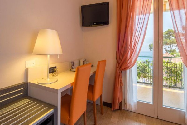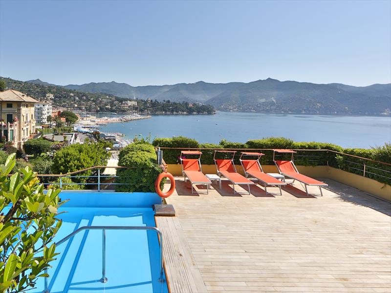 Dvojlôžková izba s balkónom a výhľadom na more Izba vybavená všetkým komfortom, s balkónom s výhľadom na more, ležadlom, malým stolíkom a nádherným výhľadom na záliv Tigullio. Má kúpeľňu s vaňou alebo sprchovacím kútom, telefón s priamou linkou, minibar, satelitnú TV, trezor, sušič vlasov, klimatizáciu, Wi-Fi s rýchlym pripojením a papuče.