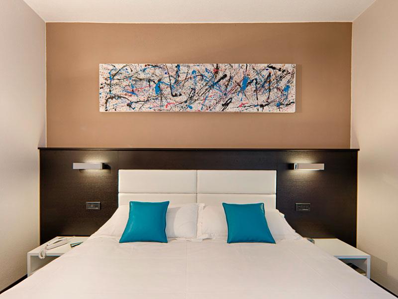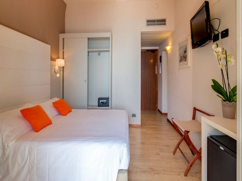 DVOJLÔŽKOVÁ ŠTANDARDNÁ POSTEĽA S BALKÓNOM Izba pre 2 osoby, priestranná a svetlá, s výhľadom do hotelovej záhrady v tichom a relaxačnom prostredí s výhľadom na zelené záhrady, vily a tenisové kurty, s výhľadom na horu Portofino. Má balkón, kúpeľňu s vaňou alebo sprchovacím kútom, telefón s priamou voľbou, minibar, satelitnú TV, trezor, sušič vlasov, klimatizáciu, Wi-Fi s rýchlym pripojením, papuče.