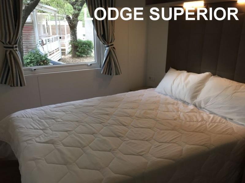 mobilhome Lodge Superior: (max. 4 osoby, cca 32 m2) spálňa s dvojlôžkom, spálňa s dvomi lôžkami, denná miestnosť s kuchynským kútom, SPR+WC, veranda. Klimatizácia.