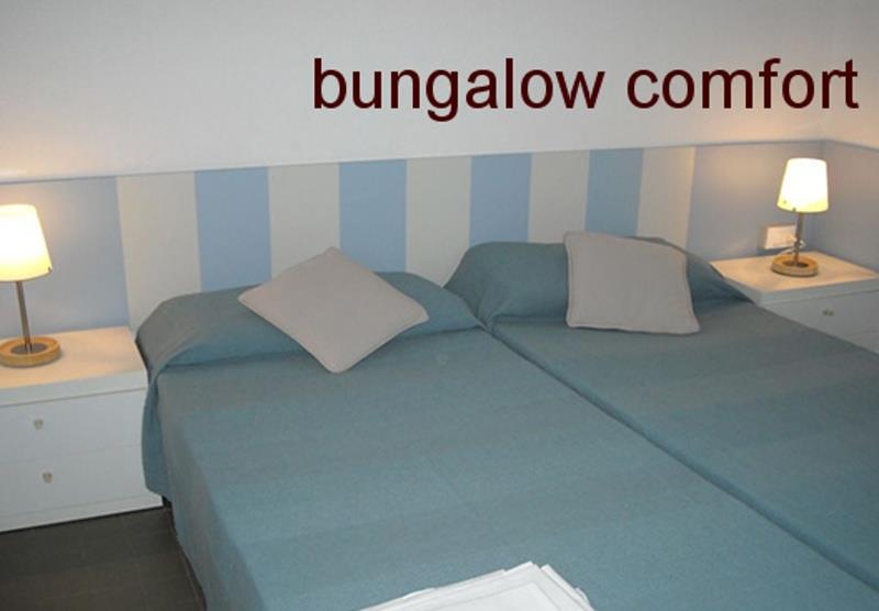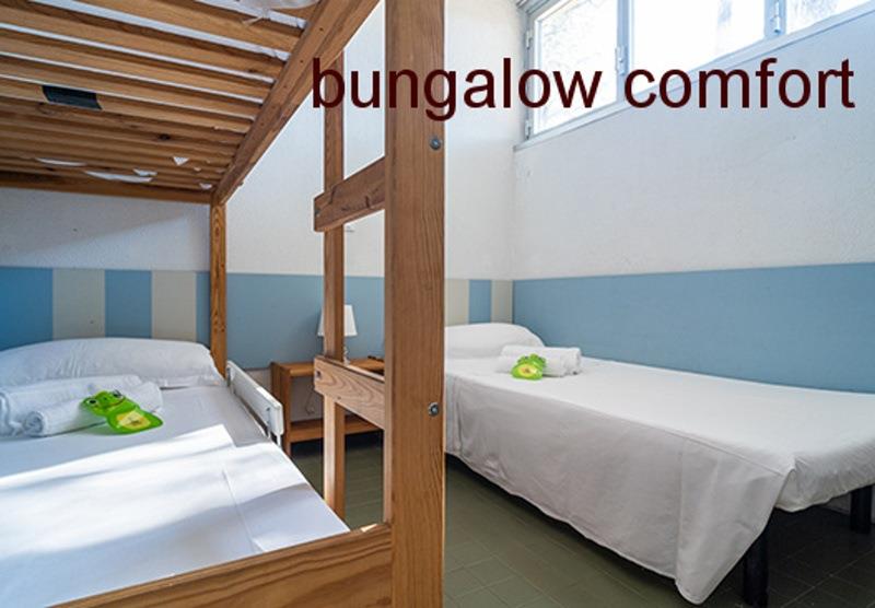 bungalov Comfort: (max. 5 osôb, cca 30 m2) spálňa s dvojlôžkom, spálňa s lôžkom a poschodovou posteľou, denná miestnosť s kuchysnkým kútom, SPR+WC, veranda. Klimatizácia.
