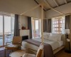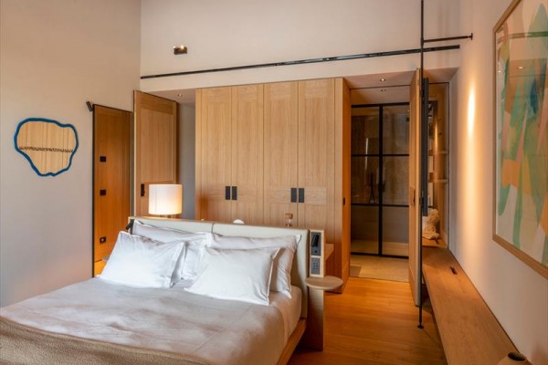 DVOJLÔŽKOVÝ SUITE MONVISO Pre tých, ktorí hľadajú ešte väčšie pohodlie, ponúkajú priestranné apartmány Monviso úchvatný výhľad na historický hrad Serralunga d'Alba a majestátne Alpy zo svojej exkluzívnej terasy s rozlohou 50 metrov štvorcových, ktorá je vybavená ležadlami, kreslami a jedálenským stolom. Apartmány Monviso sú vybavené evokatívnym, úplne udržateľným vodno-parným krbom a modernou drevenou posteľou s nebesami od majstrov remeselníkov. K dispozícii je aj veľký sprchovací kút s dažďovým efektom, dizajnová vaňa a dvojité umývadlo.